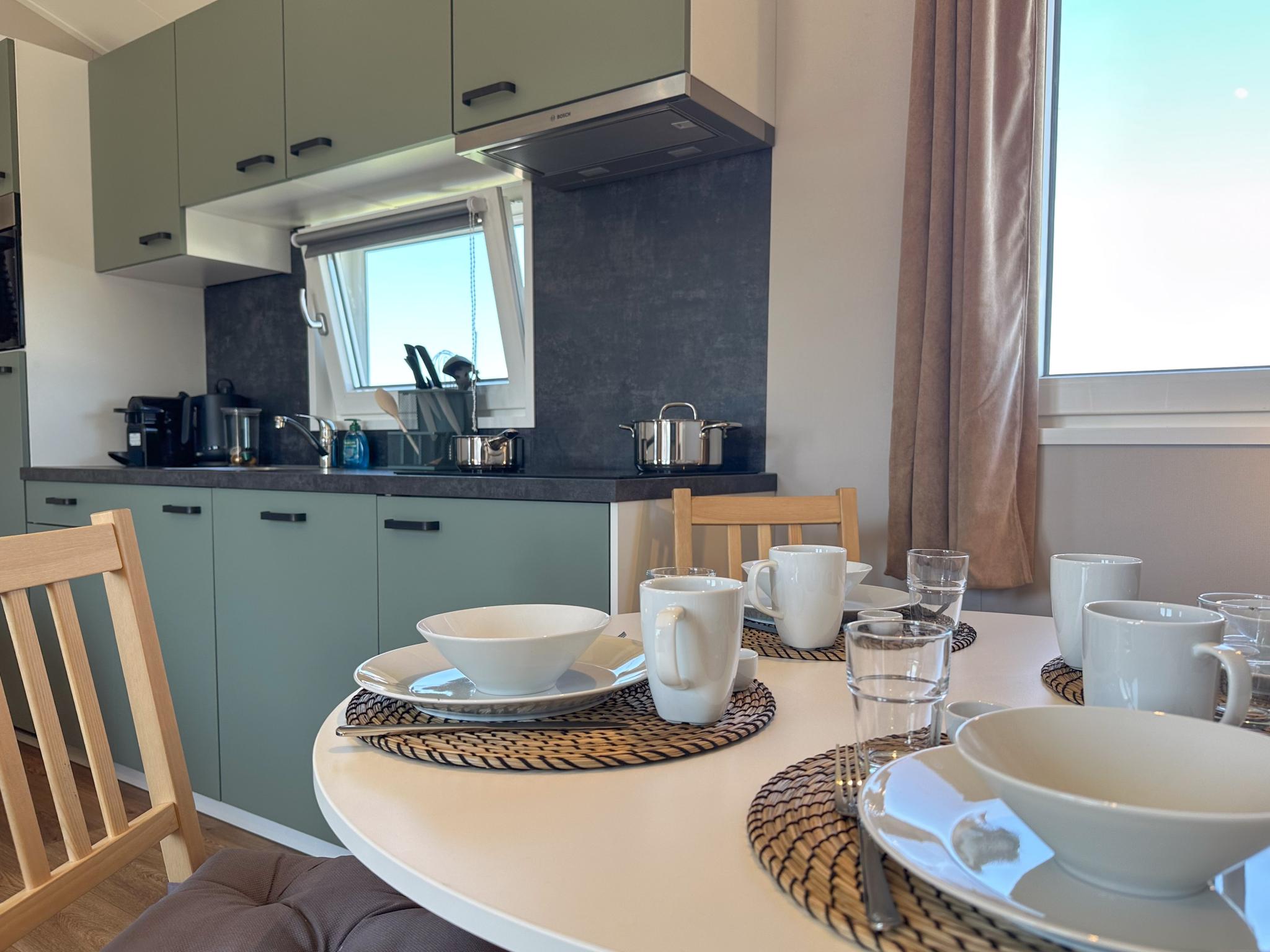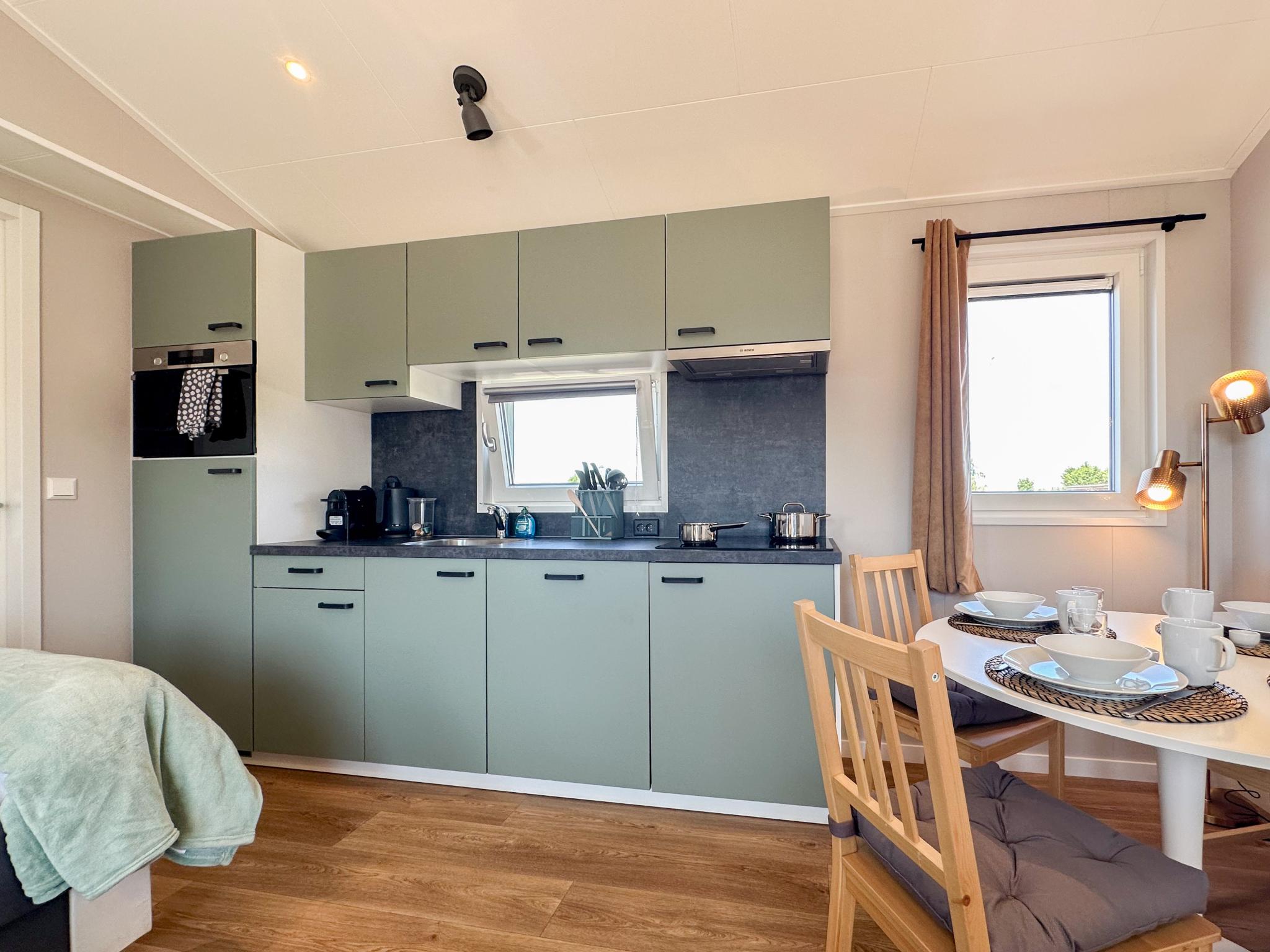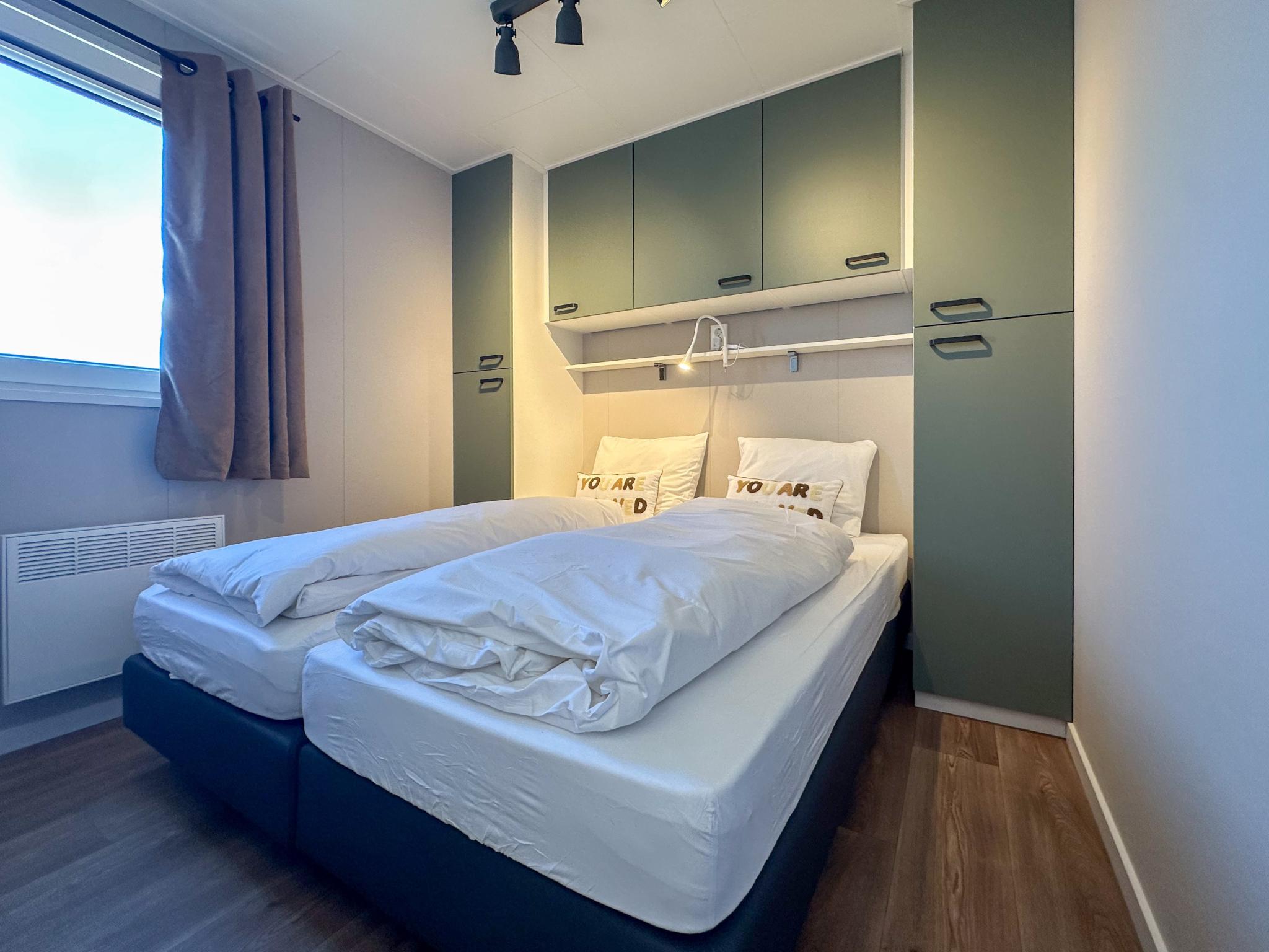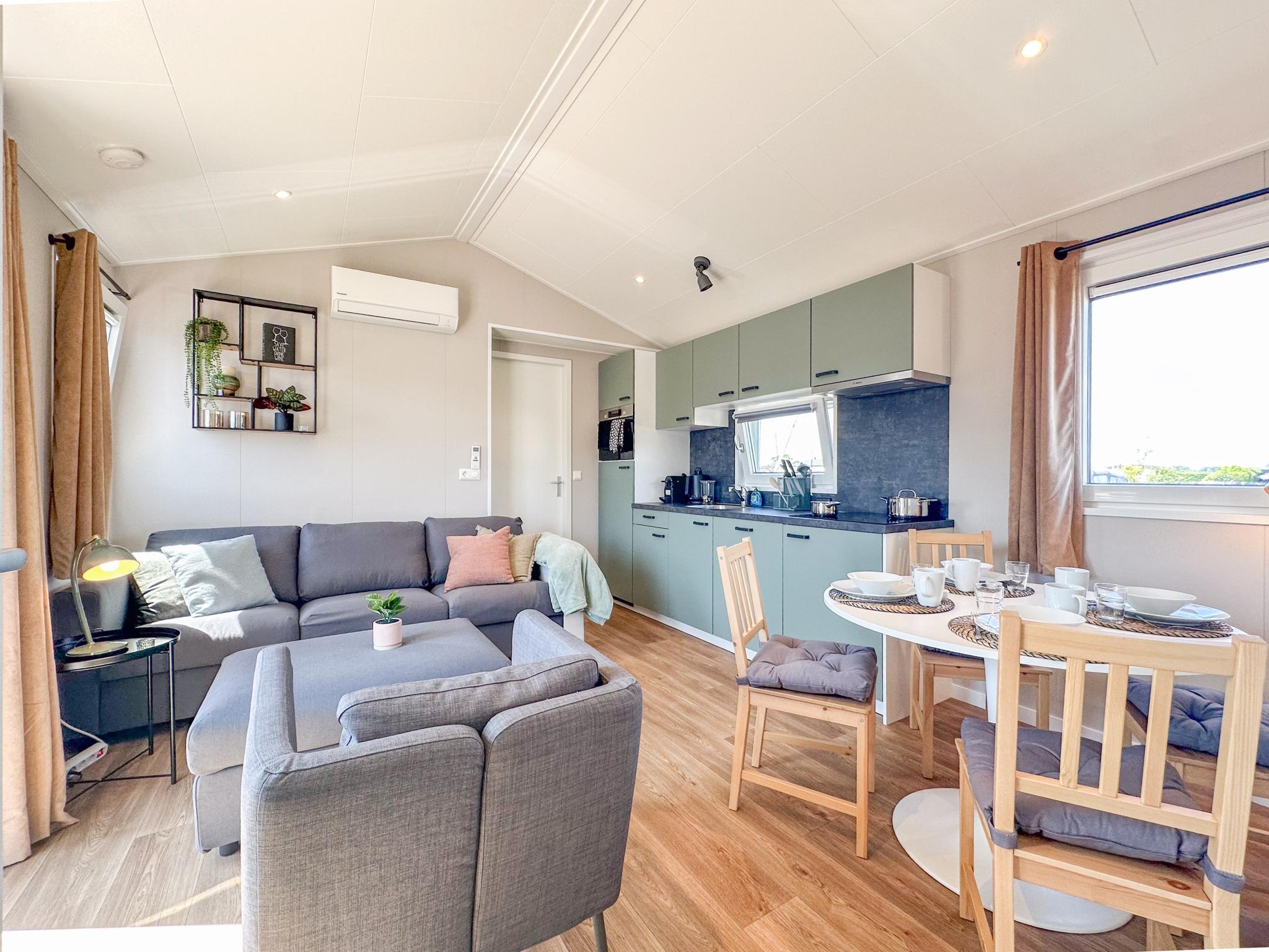 This lovely chalet on the water guarantees an enjoyable holiday. The chalet is modern and freshly decorated. The kitchen is complete, along with a fine bathroom and two bedrooms featuring full-size beds. The bedrooms have electric heating, and the living room is equipped with air conditioning. But most of your time here will be spent on the large terrace. You can jump right into the water for a refreshing dip. Or rent a boat or sup-board and explore the watery surroundings Holidaying here means, above all, enjoying water sports. Whether you want to swim, go supping with a boat. The watery area is lovely. You can also explore the area...
