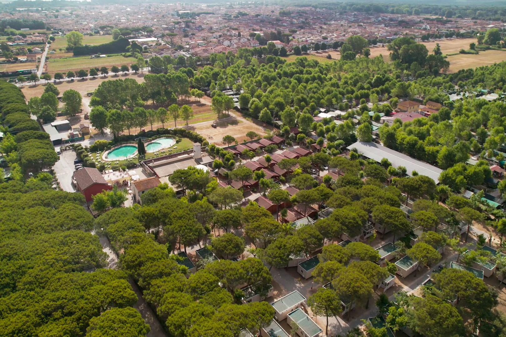 Water fun in the green heart of Tuscany Rolling green hills, plenty of sunshine, water fun right on your doorstep and the occasional refreshing sea breeze. Club del Sole Viareggio Family Collection is located in north-west Tuscany and captures that unmistakable Italian holiday feeling. The sea is just one kilometre away, and the campsite itself boasts a 379 m² water park spread across three swimming pools. Add to that sports courts, playgrounds, an entertainment team and a stylish Italian restaurant, and you have everything you need. La dolce vita is never far away here. Beach, pool or massage? Club del Sole Viareggio Family Collection is set in the picturesque town of Torre del Lago Puccini. This is exactly the Tuscany you picture: rolling green landscapes, historic towns and beautiful beaches. One of those beaches is just a one-kilometre walk from the campsite. After a relaxed stroll, stretch out on your beach towel or settle into a sun lounger beneath a parasol. Prefer to cool off closer to home? Take a dip in the campsite’s 379 m² water park. The swimming area is divided into three pools, one of which features a whirlpool. Surrounded by grassy lawns perfect for sunbathing, this is an ideal spot to spend long, lazy days. Dancing under the open sky Even on holiday, a bit of activity never hurts. At this campsite, you can be as active as you like. The sports courts are perfect for a game of football, tennis, table tennis or pétanque. Younger guests can join the fun with the on-site entertainment team. They speak Italian, but it’s still great fun to watch and take part. During high season, the days often end with an open-air disco, where you can dance the evening away in the warm sunshine. Cappuccino and pasta A holiday in Tuscany wouldn’t be complete without Italian food. Your day starts off right at the campsite shop, where you can pick up fresh bread rolls along with an Italian espresso or cappuccino. That will keep you going for the morning. In the evening, you can cook your own holiday meal at your accommodation, caravan or tent. But the campsite restaurant is an excellent alternative. Food lovers will feel right at home here, enjoying delicious pasta dishes and other Italian specialities. Discover beautiful Tuscany Another major highlight of a stay at Club del Sole Viareggio Family Collection is the surrounding area. The green hills invite you to explore by bike or on foot, winding your way through olive groves. Nearby villages and towns always have something going on. Take a walk to the coastal town of Viareggio and enjoy its many authentic Italian restaurants. Or visit Torre del Lago Puccini, where a lively open-air festival of classical opera is held every summer. Cities such as Pisa, Lucca, Livorno and Florence are also close by and perfect for a cultural day out.