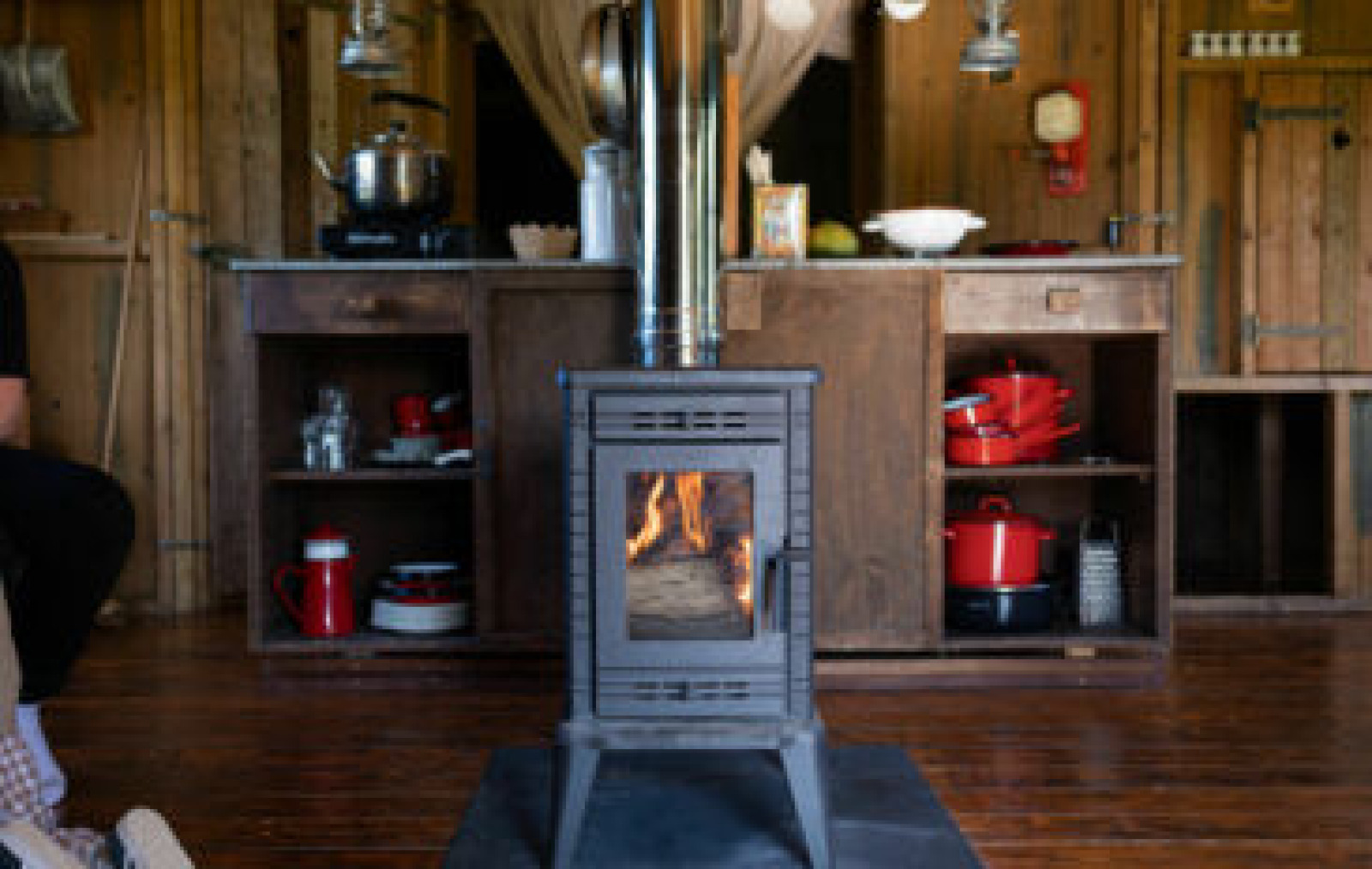 Under an elegant canopy, a retreat is created here where cozy get-togethers and living close to nature merge harmoniously. On almost 50 m² you will find a cozy seating area, a fully equipped kitchen with wood-burning stove and a spacious dining table for six people. The side walls can be opened wide and invite you to enjoy a refreshing summer breeze, while cozy niches invite you to relax. Three bedrooms – including a box bed and bunk beds – offer space for the whole family. The private outdoor shower with hot water, a real flush toilet and the wood-heated hot tub make your stay extra special. Thanks to natural temperature regulation and the covered terrace, you can enjoy carefree days here in the middle of the tranquil landscape of the Baie de Somme, come rain or shine.