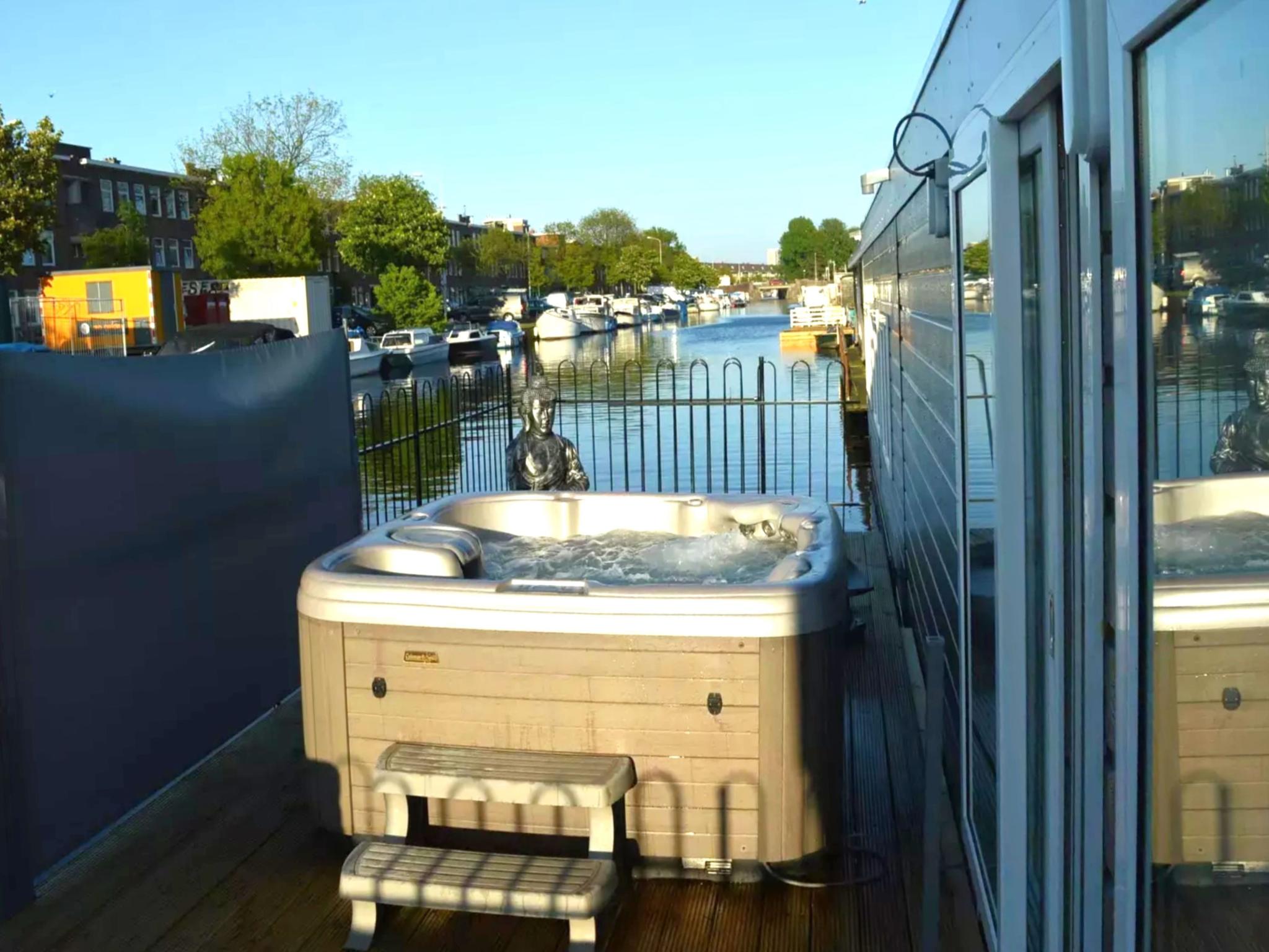Erleben Sie Den Haag vom Wasser aus und genießen Sie einen einzigartigen Aufenthalt auf diesem luxuriösen Hausboot. Es gibt zwei schöne Schlafzimmer und ein riesiges 3x2 Meter großes Schlafsofa im Wohnzimmer. Das Highlight ist natürlich das feine Sprudelbad auf der Terrasse mit Loungesofa am Wasser. Das Hausboot liegt im Zentrum, ein wunderbarer Ausgangspunkt, um die Hofstad zu erkunden. Natürlich liegt der Strand von Scheveningen in der Nähe, den Sie in etwa 15 Minuten mit dem Auto erreichen! Genießen Sie die Atmosphäre der Stadt am Wasser, während Sie bequem in Ihrer eigenen Luxusunterkunft wohnen. Nach einem Tag voller Sightseeing gibt es keine bessere Möglichkeit, sich zu entspannen als in Ihrem eigenen...