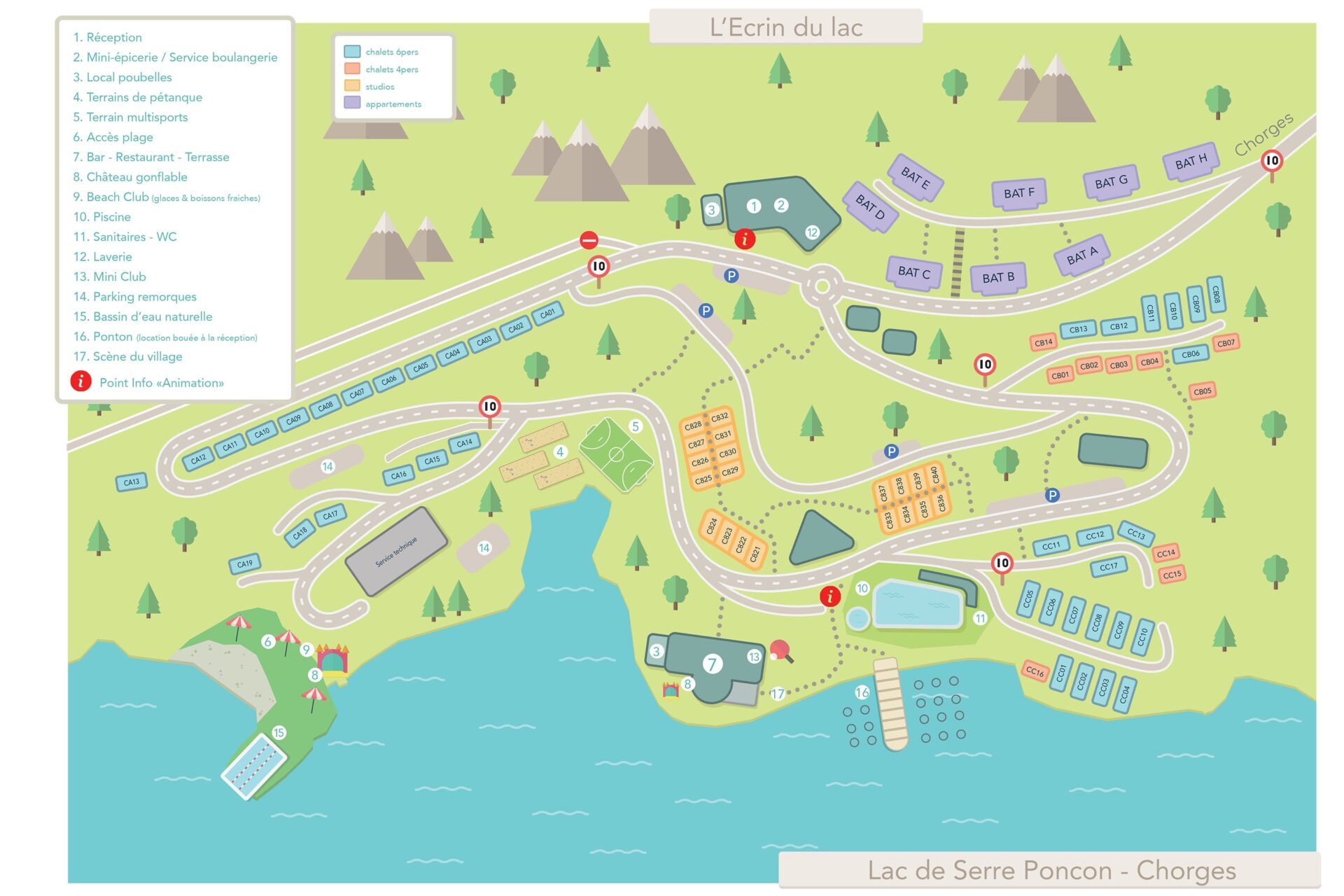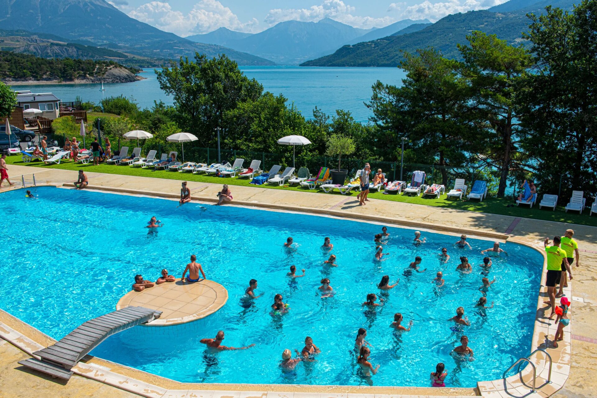 Wasserspaß in den Südalpen Im Schwimmbad mit der Sonne im Gesicht und einem wunderschönen Blick auf den See und die Berge. Hört sich das nicht wie ein Traum an? Während Ihres Urlaubs im Ferienpark L’Écrin du Lac wird dieser Traum Wirklichkeit. Dank seiner Lage am See ist dieser Campingplatz ideal, wenn Sie sich gerne im oder am Wasser aufhalten. Können Sie sich vorstellen, am Strand zu liegen, während die Kinder vom Animationsteam unterhalten werden? Aber auch für Aktivurlauber gibt es viel zu tun. Wie wäre es mit Kajakfahren oder einer Partie Tischtennis? Das alles können Sie in Ihrem Urlaub auf diesem Campingplatz in Chorges, Frankreich, machen!   Ein schönes Schwimmbad am tiefblauen See Das Schwimmbad auf diesem Campingplatz liegt am Rande des Sees, und vom Wasser aus haben Sie einen Blick auf die schönen Berge. Sie wollen Sonne tanken und sich entspannen? Dann legen Sie sich einfach auf einen der Liegestühle rund um den Pool. Und liegen Sie lieber am Strand? Dann ist es gut zu wissen, dass L’Écrin du Lac auch über einen kleinen Privatstrand am See verfügt. Hier können Sie nicht nur schwimmen und sich sonnen, sondern auch Kajak fahren und andere Wassersportarten ausüben. Als Liebhaber von Wasserspaß sind Sie auf diesem Campingplatz immer richtig!   Sportliche Aktivitäten und ein Restaurant mit Panoramaterrasse Der Ferienpark L’Écrin du Lac ist ein Ziel für aktive Urlauber. Ein Animationsteam steht bereit, um Sie und Ihre Familie zu unterhalten. Es werden verschiedene Aktivitäten organisiert, darunter Wassergymnastik und Tischtennisturniere. Und wie wäre es zum Beispiel mit einem lustigen Karaoke-Abend? Natürlich ist Ihr Urlaub ohne gutes Essen nicht komplett. Der Campingplatz verfügt über ein eigenes Restaurant mit einer gemütlichen Terrasse, von der aus man einen herrlichen Blick hat. Hier können Sie köstliche Mahlzeiten und Snacks genießen.   Entdecken Sie die wunderschönen Südalpen Dieser Campingplatz liegt inmitten der Südalpen. In der Umgebung gibt es viel zu unternehmen und zu erleben. Denken Sie an einen Besuch des Nationalparks Les Écrins. Dies ist einer der schönsten und größten Naturparks Frankreichs. Sie können durch die friedliche Landschaft wandern oder an aktiven Outdoor-Aktivitäten teilnehmen, alles ist möglich. Können Sie sich vorstellen, hier Rafting oder Mountainbiking zu betreiben? Sie können die Gegend zu Fuß, mit dem Fahrrad oder sogar von einem Heißluftballon aus erkunden. Die schöne Umgebung sorgt für unvergessliche Erinnerungen!