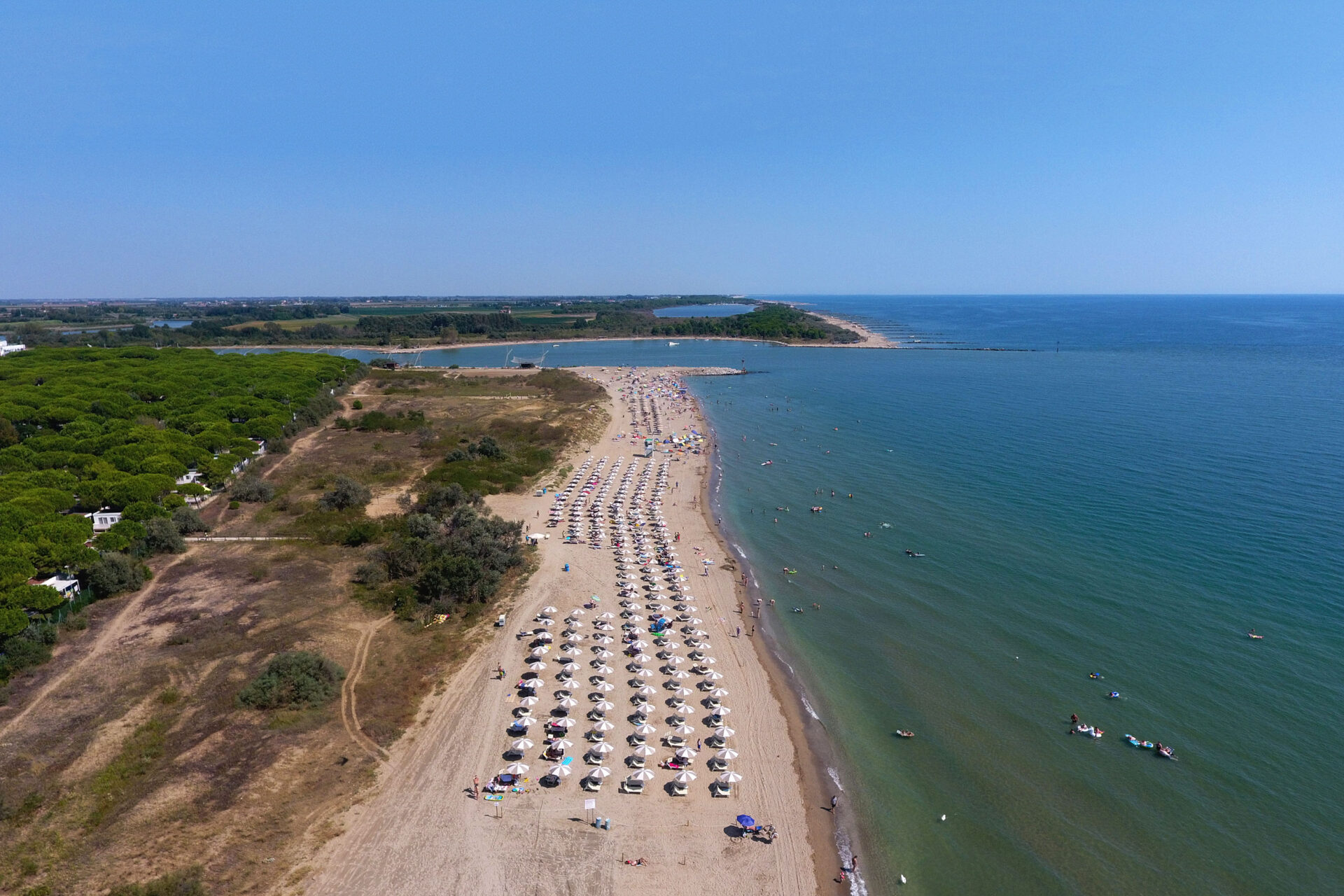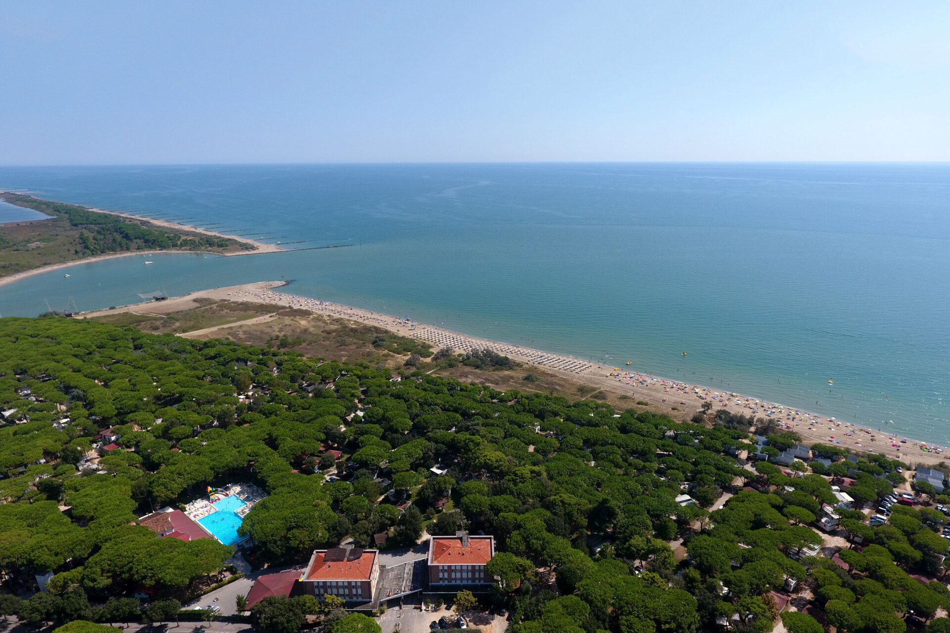 Ein Stück Privatstrand an der italienischen Küste Genießen Sie Ihren Urlaub direkt am italienischen Strand auf diesem Camping in der Nähe von Venedig! Das tolle Schwimmbad verspricht doppeltes Badevergnügen. Planschen Sie im Freibad von Jesolo Mare Family Camping Village oder tauchen Sie ins Mittelmeer ab. Während die Kinder an einem Sportwettbewerb teilnehmen, entspannen Sie sich im Wellnesszentrum. Im Restaurant stärken Sie sich gemeinsam bei Pizza, um anschließend erneut abzutauchen. Sie können auch einen Tag im Aquapark Caribe Bay verbringen. Und natürlich darf ein Abstecher nach Venedig nicht fehlen. Privatstrand an der Adriaküste Ein Privatstrand am Mittelmeer: Luxus vom Feinsten! Von diesem italienischen Campingplatz aus erreichen Sie in nur wenigen Schritten den Strand. Der Campingplatz befindet sich in Lido di Jesolo, dem Küstenteil von Jesolo. Diese Stadt ist einer der schönsten Badeorte an der Adriaküste. Der Strand von Lido di Jesolo ist 15 Kilometer lang. Als Gast des Jesolo Mare Family Camping Village kommen Sie in den Genuss, ein beachtliches Stück Strand für sich ganz alleine zu haben. Für extra Komfort sind Liegen und Sonnenschirme zu mieten. Schwimmbad für jedermann Das große Schwimmbecken hat verschiedene Tiefen, sodass sich alle Gäste hier vergnügen können. Im Planschbecken können die Kinder von den bunten Rutschen sausen oder im tieferen Teil des Beckens Wasserball spielen, während Sie sich auf einer der vielen Sonnenliegen rund um das Becken sonnen. Kein Platz? Ab zum Strand! Dort gibt es reichlich Platz. Innerhalb weniger Minuten wärmen Sie Ihre Füße am Sand des Strands. Zeit für ein Sonnenbad oder einen Sprung ins Meer! Essen, Bewegung, Entspannung Nach dem Schwimmen haben Sie Hunger? Gehen Sie vom Wasser direkt in Restaurant. Hier können Sie italienische Pizzen bestellen oder venezianische Fischspezialitäten probieren. Nach einer köstlichen Mahlzeit sind Sie gestärkt. Bringen Sie die Kinder auf den Spielplatz, der angenehm im Schatten liegt. Werden Ihre Kinder an einem Beachvolleyball-Turnier oder einer Kinderdisco im Theater teilnehmen? Dann können Sie während eines Fitnesskurses ins Schwitzen kommen oder sich im Wellnesszentrum des Jesolo Mare Family Camping Village entspannen. Von einer Massage bis zum Saunabesuch stehen Ihnen hier alle Möglichkeiten offen. Luxusunterkünfte am Meer Ein Mobilheim unter Bäumen oder ein Chalet mit Blick auf das Meer … Im Jesolo Mare Family Camping Village haben Sie die Qual der Wahl. Viele der Unterkünfte liegen im Schatten eines Pinienwaldes. Dadurch – und dank der Klimaanlage im Haus – ist es hier angenehm kühl. Eine Unterkunft mit zwei Badezimmern bringt zusätzlichen Luxus. Höchste Wasserrutsche in Europa Sie mögen es rasant und abenteuerlich? Dafür müssen Sie gar nicht weit gehen! Der Lido di Jesolo hat die höchste Wasserrutsche Europas. Nach 15 Minuten Fahrt erreichen Sie den Wasserpark Caribe Bay (ehemals Aqualandia). Dieser große Aquapark begeistert mit seinen aufregenden Rutschen und Schwimmbädern für alle Altersgruppen. Nehmen Sie an einer großen Schlacht mit Wasserpistolen teil oder genießen Sie eine Piratenshow. Sie wünschen sich ein wenig Kultur? Fahren Sie nach Venedig – innerhalb einer Stunde erreichbar – mit seinen zahlreichen Brücken und Kanälen. An der Rezeption erhalten Sie weitere Informationen zu Ausflügen, Vergnügungsparks und tollen Städten. Dort können Sie auch Ermäßigungen für einige Attraktionen erhalten.