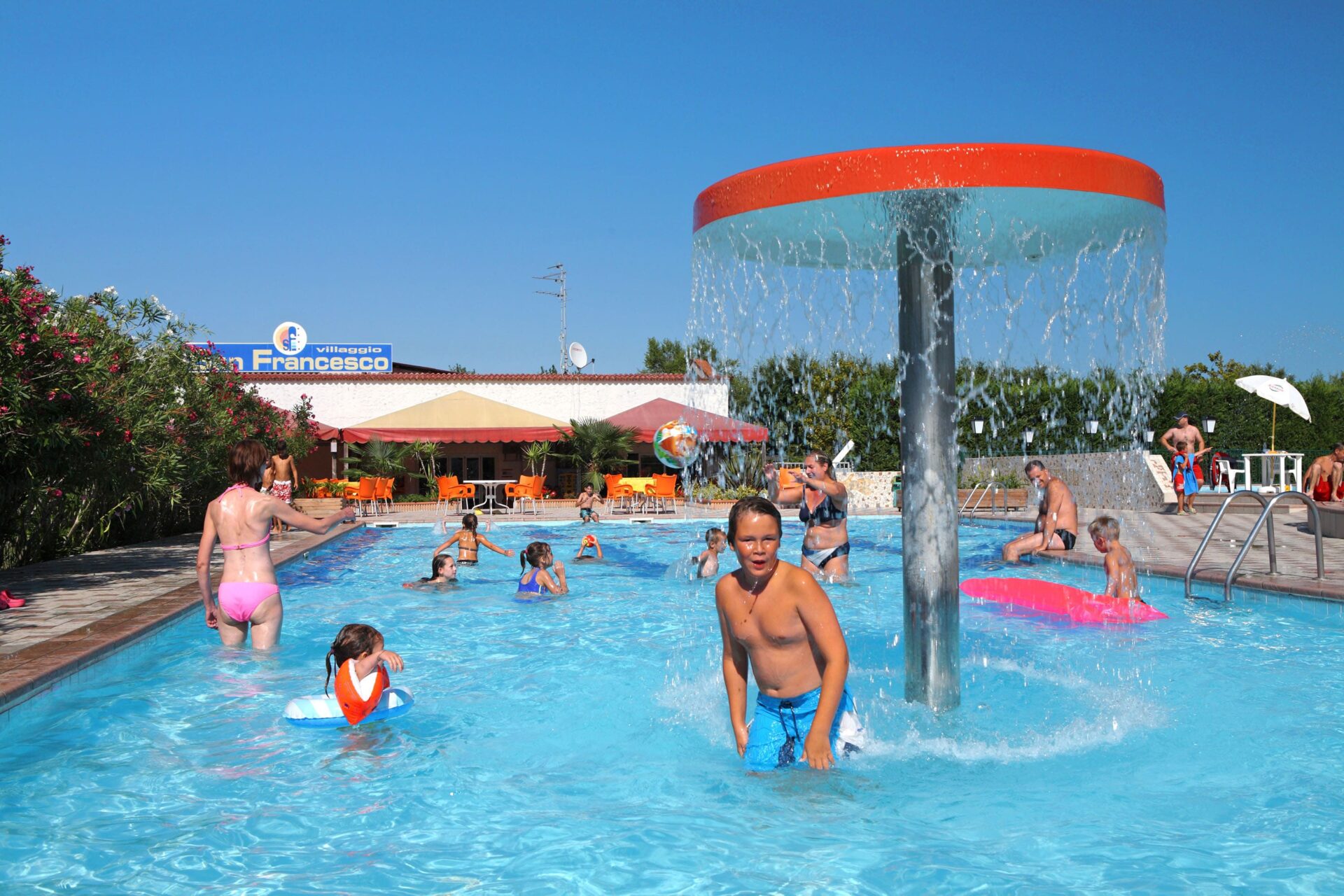 Ein erlebnisreicher Urlaub am Meer Privatstrand, Schwimmparadies und Aquapark: Auf diesem italienischen Camping erwartet Sie täglich Wasserspaß. Sie übernachten in einem Pinienwald auf der Halbinsel Cavallino-Treporti, zwischen Caorle und Venedig. Camping San Francesco befindet sich direkt am Strand der Adria. Vergessen Sie nicht, Ihre Badesachen einzupacken! Der Camping bietet aber noch viel mehr als endlosen Wasserspaß: von Tanzkursen bis hin zu Spielvergnügen im großen Kinderspieldorf.   Ein Privatstrand in der Nähe von Venedig Camping San Francesco befindet sich in der Nähe von Caorle, in einem eindrucksvollen Pinienwald direkt am Meer und am Strand. Das Fischerdorf Caorle ist in nur 10 Fahrminuten erreichbar, und auch Venedig ist nur 50 km entfernt. Der Privatstrand des Campings ist der perfekte Ort für einen sonnigen Strandurlaub. Erfrischen Sie sich im Meer oder bereiten Sie sich auf ein Wasserski- oder Windsurf-Abenteuer vor. Hundeliebhaber aufgepasst: Der Camping verfügt über einen eigenen Hundestrand.   Tagelanges Badevergnügen Dieser italienische Camping bietet Ihnen den Luxus mehrerer Wasserparks! Alle Becken und Wasserrutschen garantieren tagelangen Wasserspaß. Also nichts wie ab ins Wasser! Genießen Sie das Sprudeln des Whirlpools, spielen Sie mit den Kindern im Planschbecken oder schwimmen Sie Ihre Bahnen – auf dem Camping San Francesco ist alles möglich. Die Schwimmbecken sind über das ganze Campinggelände verteilt, sodass immer ein Becken in der Nähe ist. Sie möchten von hohen Wasserrutschen sausen? Dann sind Sie im Aquapark genau richtig!    Ein beschwingter Abschluss Sie suchen die Kinder? Möglicherweise vergnügen sie sich im Spieldorf auf einer der vielen Hüpfburgen oder im Bällebad. Jugendliche Gäste nehmen an Wasserwettbewerben teil. Belegen Sie in der Tanzschule Salsa-, Merengue- und Mambo-Unterricht und genießen Sie nach einem ereignisreichen Tag in einem der Restaurants ein köstliches Mahl mit der ganzen Familie. Bevorzugen Sie ein Fischgericht, Pizza oder italienische Tapas und Wein? Probieren Sie Ihre Tanzschritte nach dem Essen auf der Bühne oder entspannen Sie sich bei Tanzshows oder Theateraufführungen. Auf diesem Camping erwartet Sie immer ein beschwingter Abschluss des Tages.   Unterkunft zwischen den Dünen und in den Wäldern Wo campen Sie lieber? Zwischen den Bäumen oder fast direkt am Strand? Die Stellplätze auf dem Camping San Francesco liegen größtenteils im Pinienwald. Sie können Ihre Zelte aber auch in den Dünen aufschlagen. Sie wünschen sich den Luxus eines Mobilheims? Dann haben Sie eine große Auswahl. Die Appartements mit Übernachtung und Frühstück sind besonders luxuriös. Von der Terrasse dieser „Sky Rooms“ aus haben Sie Aussicht auf den Campingplatz.   Caorle oder Venedig Caorle mit seinen bunten Häuschen und engen Gassen ist einen Besuch wert. Dieses Städtchen ist nur 10 Minuten vom Camping entfernt. Sie suchen den besten und frischesten Fisch? Den finden Sie in einem der Restaurants oder auf dem Fischmarkt, auf dem die Fischer ihren Fang anbieten. Sie können sich sogar Ihren eigenen Fisch für den Grill aussuchen. Wenn Sie schon mal in der Gegend sind, sollten Sie unbedingt auch einen Abstecher nach Venedig machen. Punta Sabbioni erreichen Sie in nur 30 Minuten und von dort aus fahren mehrere Fähren zu den Kanälen Venedigs. Bereits die Bootsfahrt zu dieser berühmten italienischen Stadt wird die Kinder vollends begeistern.